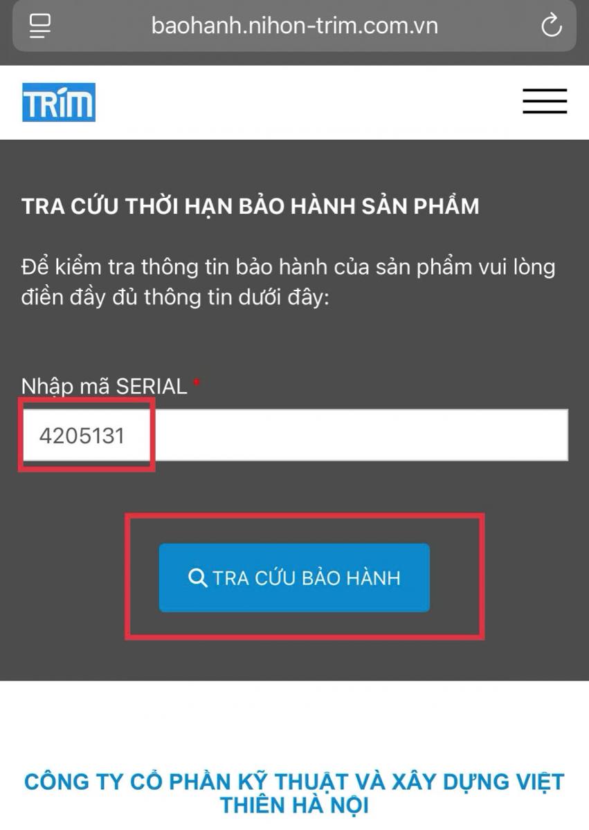 Hãy nhập dãy số seri khoanh đỏ này vào link này: https://baohanh.nihon-trim.com.vn/home/tracuu